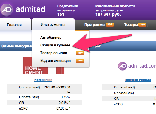 Напомним, что промокоды и купоны на скидки находятся в инструментах.