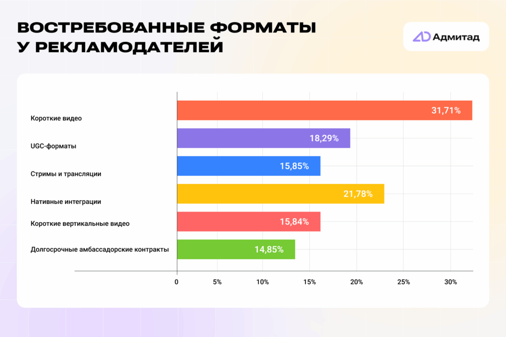 Тренд на эффективность изменит структуру и самой цифровой рекламы. Охватные кампании уступят место таргетированным выходам, точно попадающим в целевую аудиторию брендов. Реклама будет все больше адаптироваться под нативный контент, становясь его органичной частью. Инфлюенс-маркетинг укрепит свои позиции, а наибольшим спросом будут пользоваться лайфстайл-блогеры, авторы юмористического и познавательного контента.